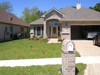 We have sealed up the new house, turned on the alarm system, got somebody to mow the lawn, and have departed Bryan for the next four months or so. And guess what ... here we are at the Crestview RV dealer again (dark pic, sorry) getting parts bolted on the Flying Scotsman. And it is hot and humid ... and we are ready for the cool weather in the north.