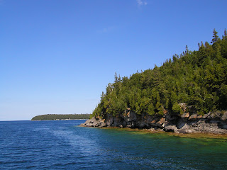 The water portion of the national parks in the upper Bruce Peninsula is called the Fathom Five National Marine Park of Canada and is really a spectacular piece of the Earth. After our water adventure we went slightly south to the Bruce Peninsula National Park, a separate and huge piece of real estate on the eastern shore of the peninsula. From the park parking lot you can walk about a half-mile toward the shore through a pretty dense forest on the Niagra Escarpment ... puff, puff.