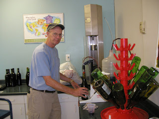 The rookie brewmaster hard at work filling the never ending bottles. I'm not smiling ... but I don't know why as you sample as you go and there are always leftovers.