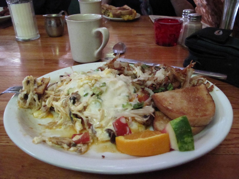 To start the day off right you need to hit Ted's Range Road Diner (the Quonset hut in previous blogs) for Ted's Gastronomical Breakfast. 3 eggs, peameal bacon, onions, tomatoes, sprouts, mushrooms, cheese, special sauce, German style hash browns, and rye bread.