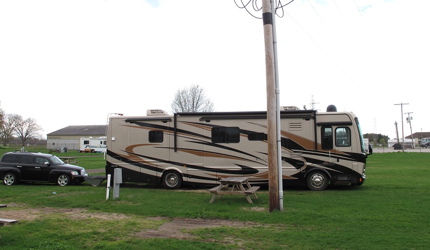 This is a very unimproved grassy field with us in the 50 degree rain .... wow. Elkhart seemed to be an old working class town that hasn't changed much in the last 40 years or so and the local park (the best in a 50 mile radius) left a lot to be desired. Level lot with a sewer ... 'bout it.