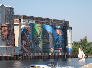 As you depart the harbor you see the wonderful painted grain silos. This thing is 80 feet high and 250 feet long, painted by a German named Lentz ... really neat piece of art depicting the relationship of the Jesuits and the Iroquois Indian population of 1650.