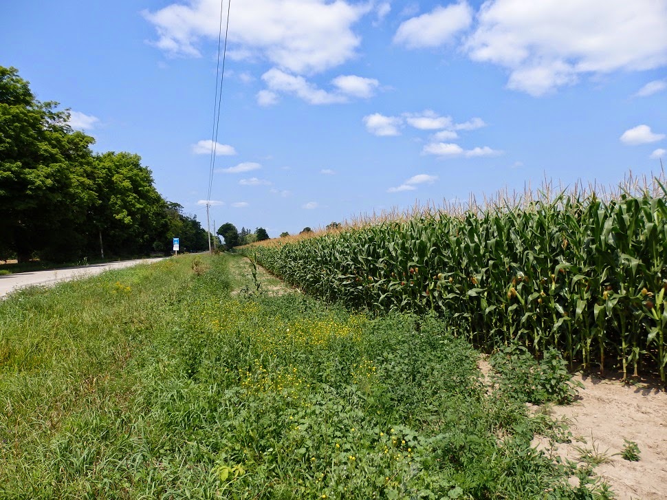 And the stuff goes on for miles ... literally hundreds if not thousands of acres locally. Farmer Brown down the road has cut his first bunch and it will be piled on the table beside the house for $6 a dozen (13 ears of course) ... we'll be the first in line.
