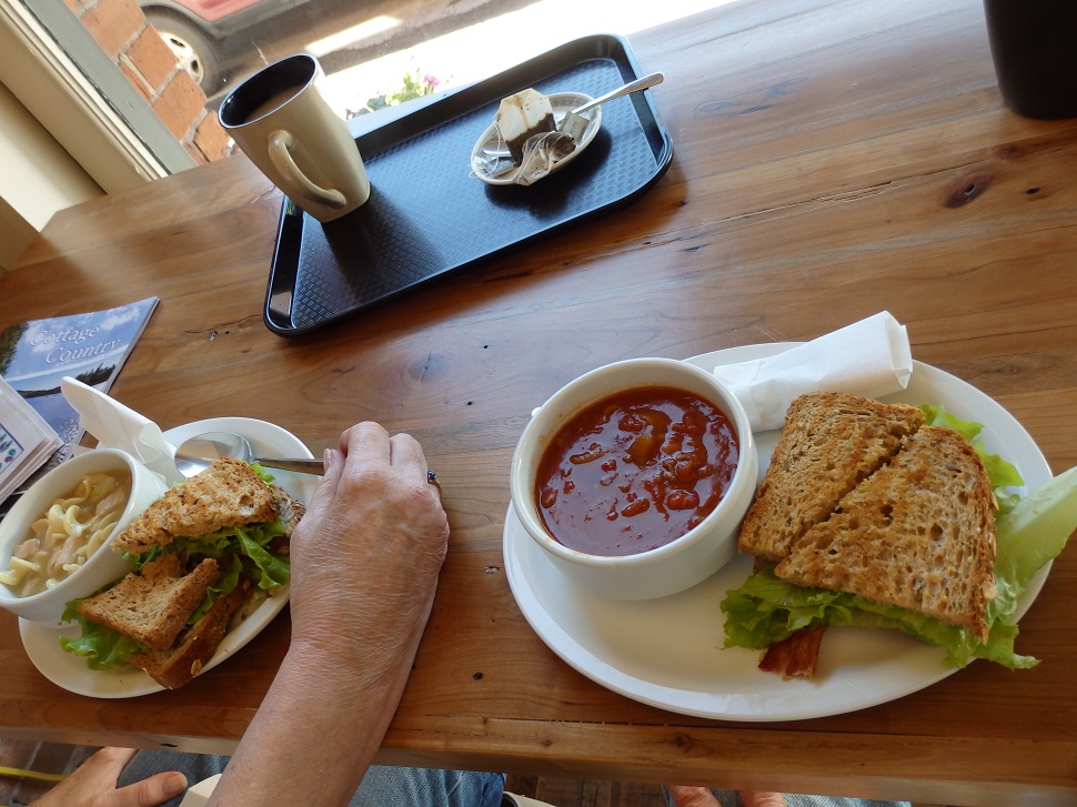 Which ended up being a BLT sandwich on some really good grain bread accompanied by chicken noodle soup and a bowl of veggie rich chili; all washed down with a hot cup of Earl Grey tea.