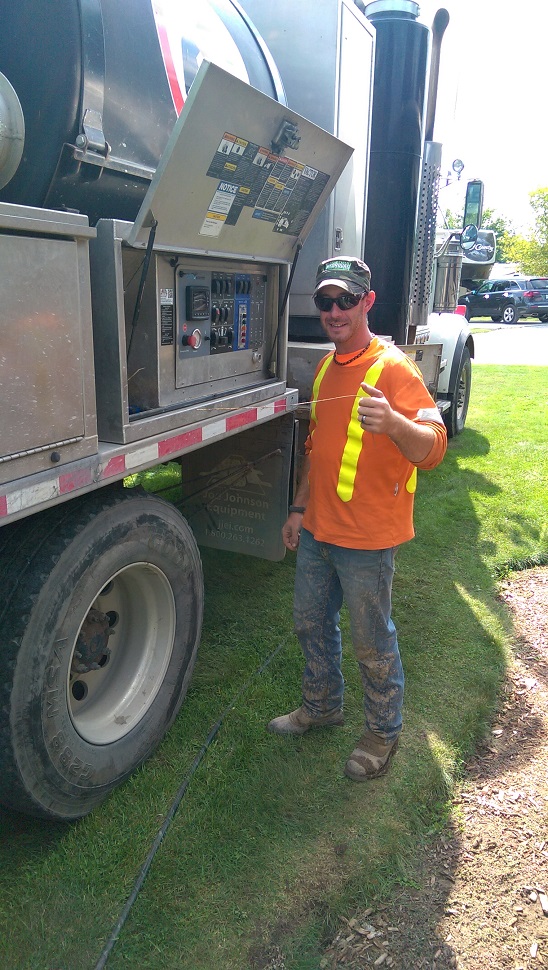 So this massive vacuum machine showed up to cut a hole down to the severed line with the least amount of digging possible. Not the least amount of noise however. The pump in that thing roared with mega decibels for several hours shaking the bus from end to end.
