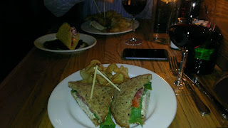 We both had the chicken salad pita and with the freshly made chips it was a real treat. All of the ingredients were locally sourced (maybe not the crab) and the breads and wine first class.